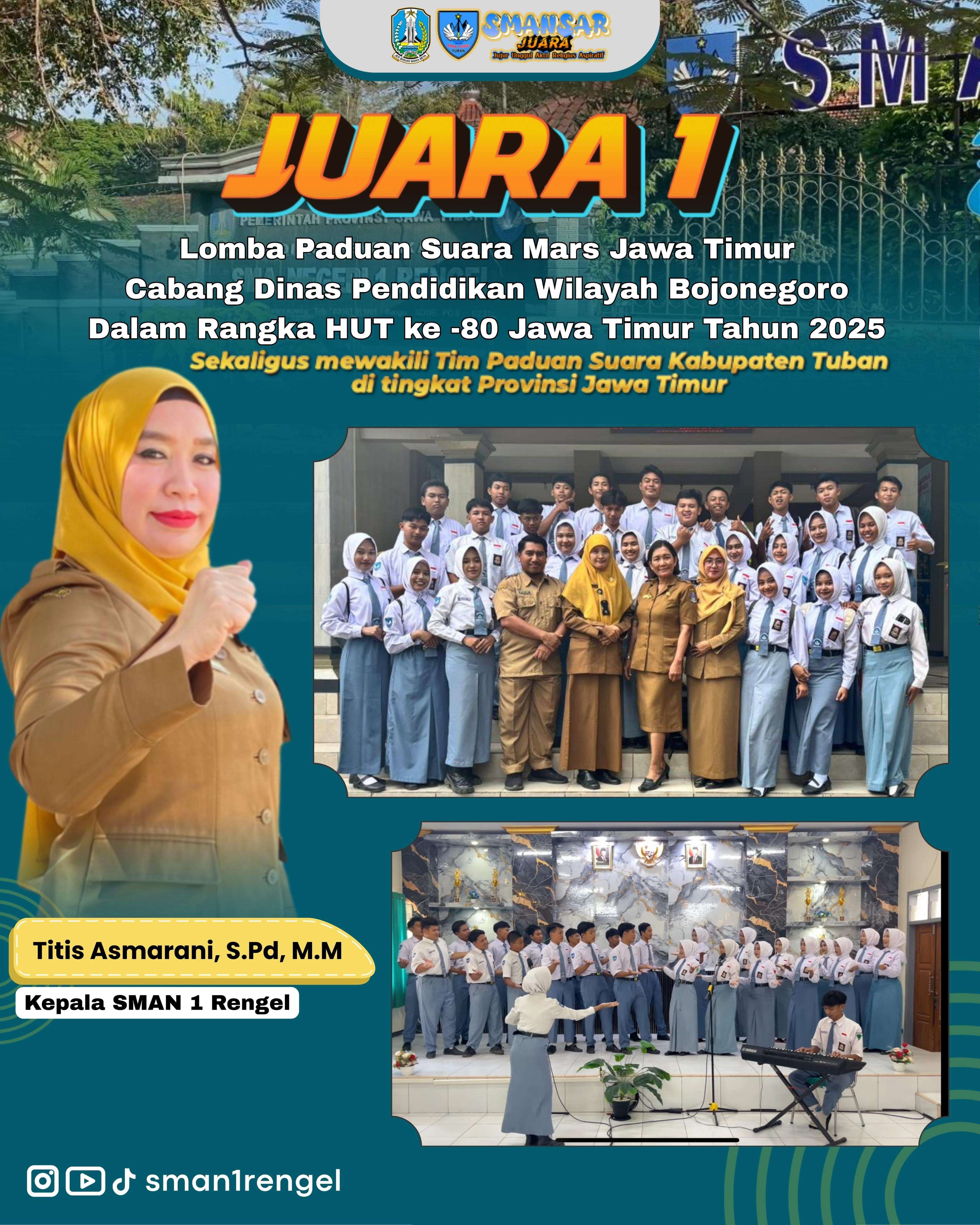 Gita Bahana Suara yang berhasil meraih Juara 1 pada ajang Lomba Paduan Suara Mars Jawa Timur SMA/SMK Cabang Dinas Pendidikan Wilayah Bojonegoro dalam ...