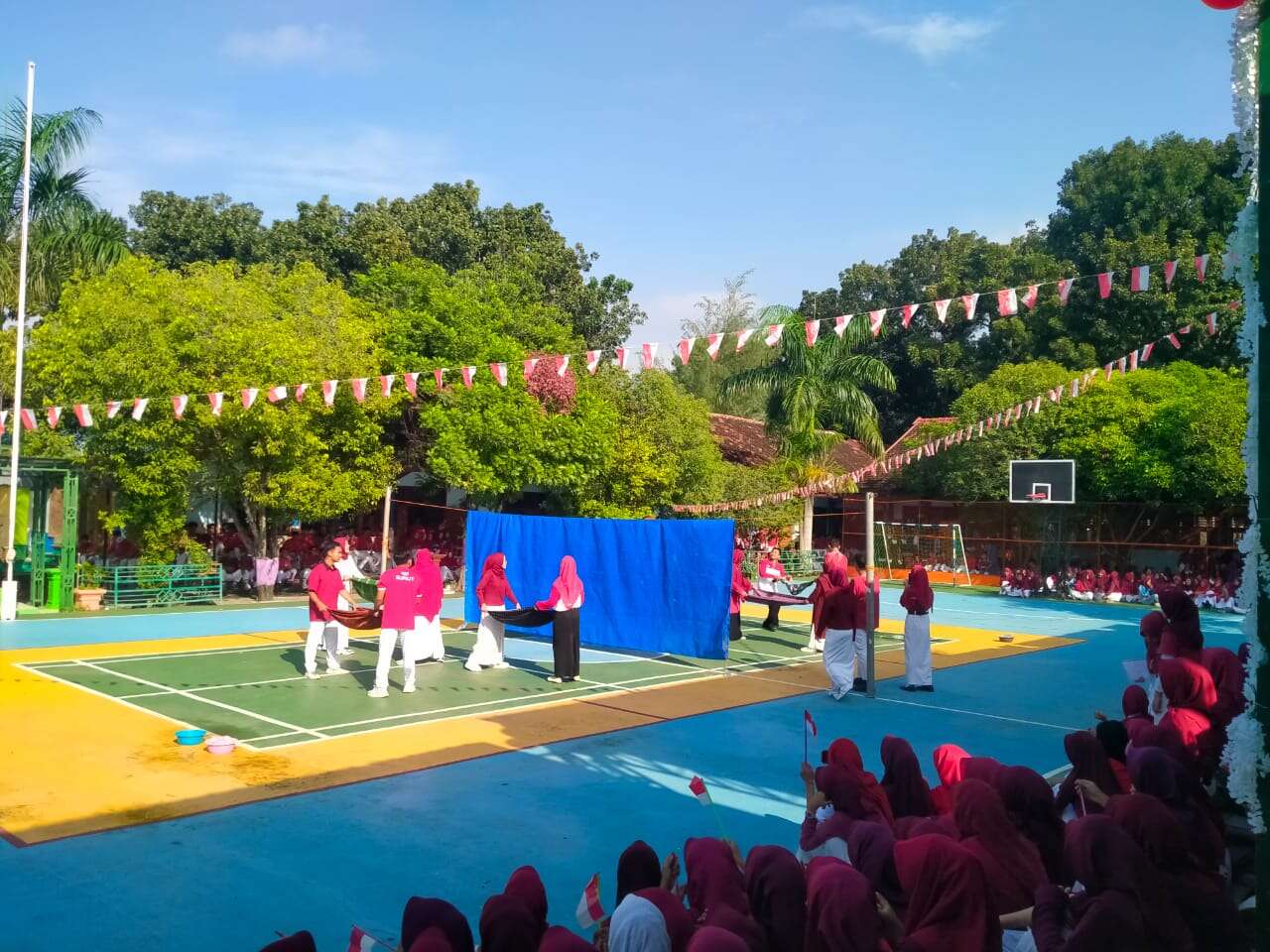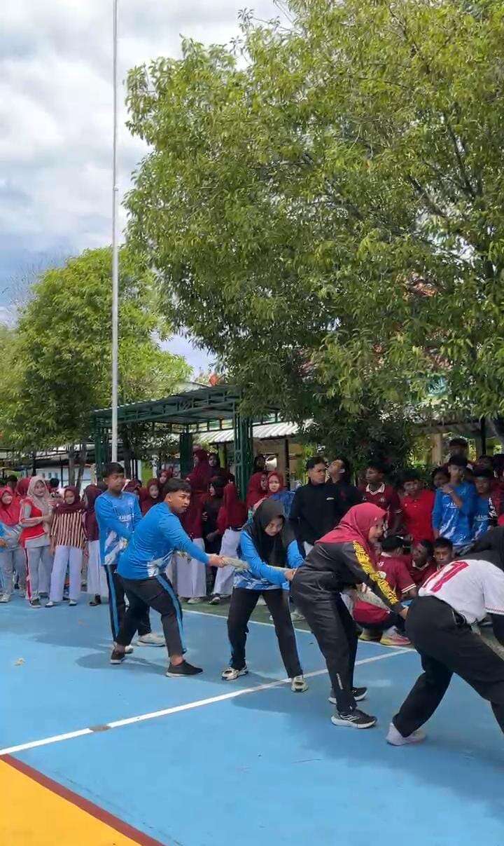 Seluruh siswa dari berbagai kelas turut berpartisipasi aktif dalam lomba, menciptakan suasana meriah dan sportif di lingkungan sekolah.