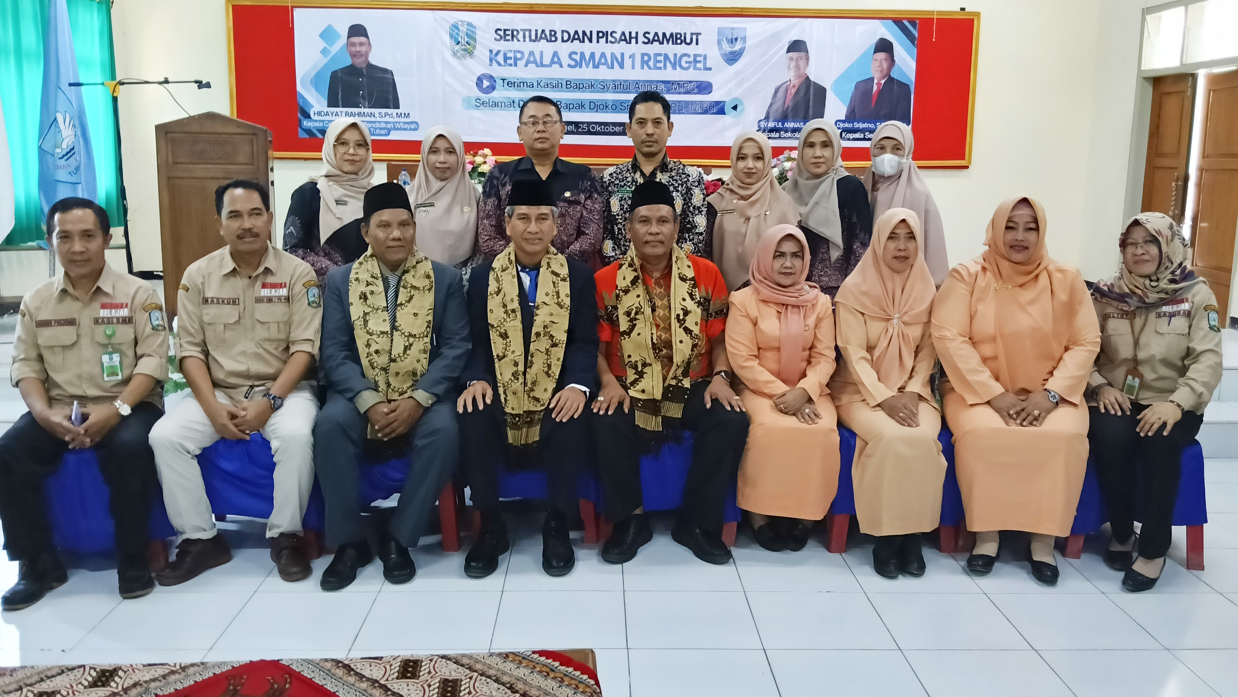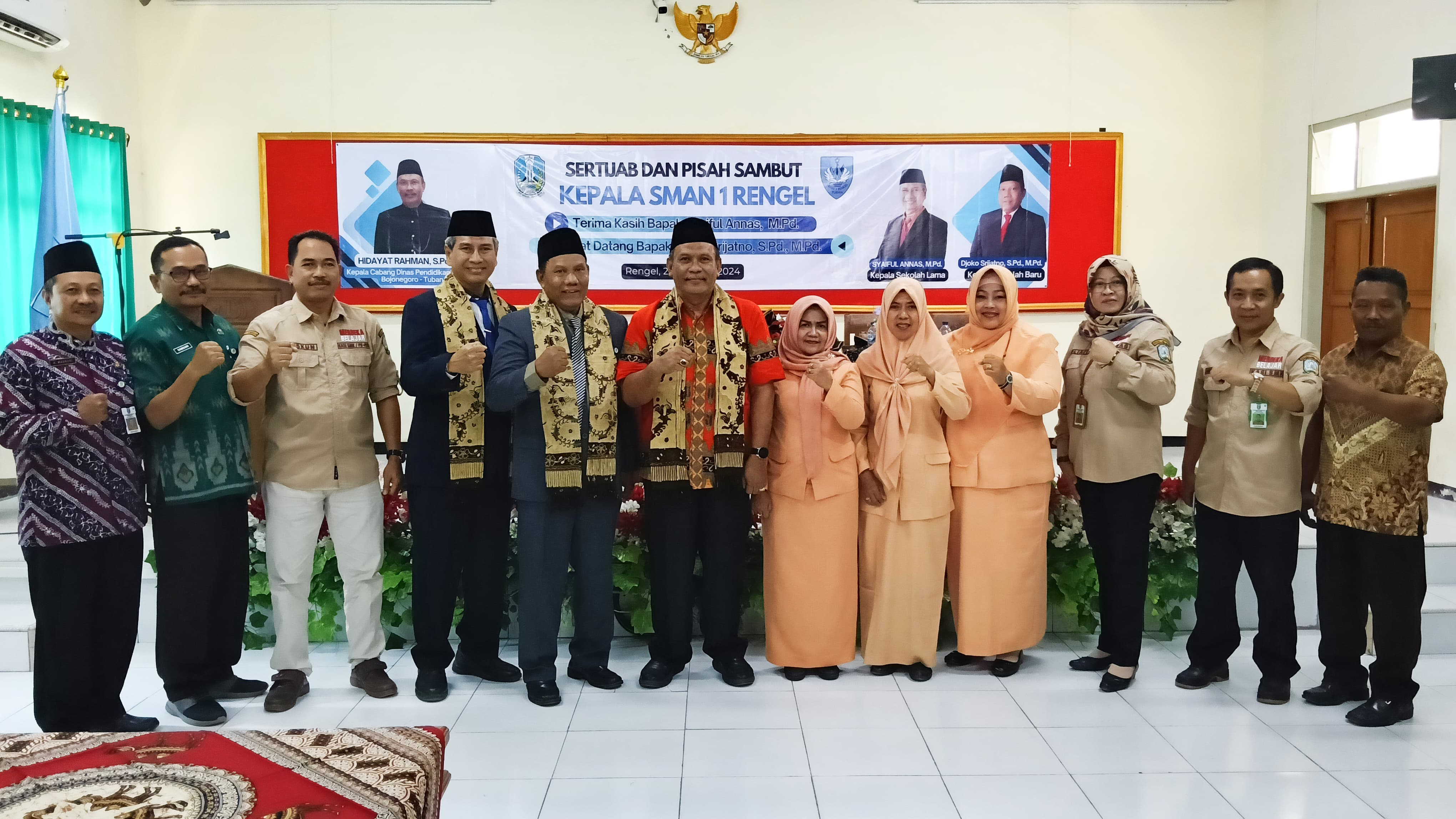Bapak Syaiful Annas, M.Pd menjabat sebagai kepala SMA Negeri 1 Rengel dengan jabatan barunya sebagai Kepala SMA Negeri 1 Tuban yang digantikan oleh Bapak Djoko Srijatno, S.Pd., M.Pd, yang sebelumnya menjabat sebagai Kepala SMA Negeri 3 Tuban. Acara pisah sambut ini dihadiri oleh Bapak Hidayat Rahman, S.Pd., MM. selaku Kepala Cabang Dinas Pendidikan Wilayah Kab. Bojonegoro - Tuban, Kasubag TU Cabang Dinas Pendidikan Wilayah Kab. Bojonegoro – Tuban, Bapak Ibu Kepala SMA Negeri sekitar Kec. Rengel, serta Bapak Ibu guru dan karyawan dari SMA Negeri 1 Rengel.