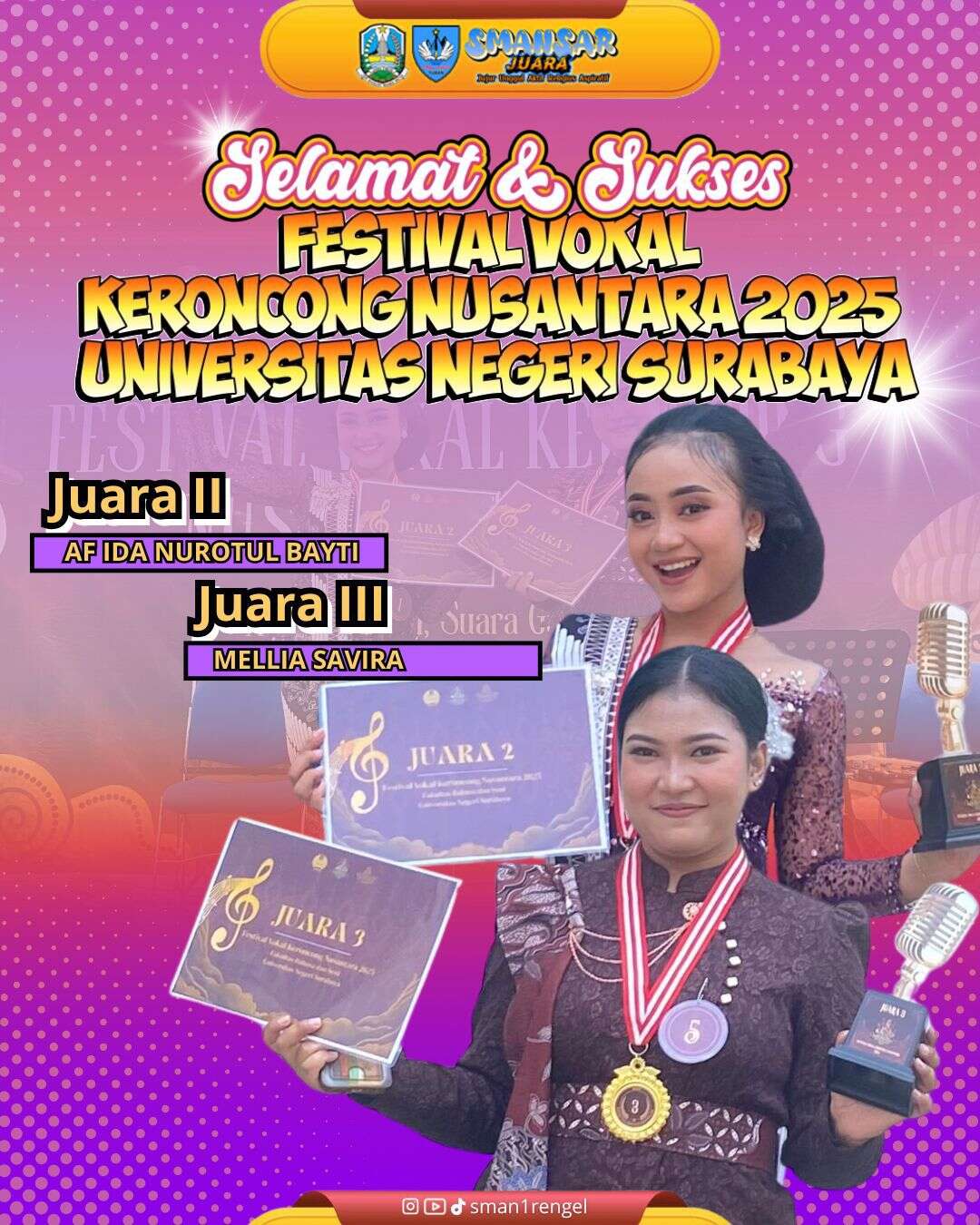 SMA Negeri 1 Rengel Raih Juara 2 dan 3 Festival Vokal Keroncong Nusantara 2025